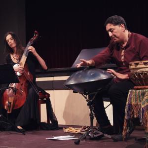 Die erst einmal überraschend klingende Kombination mit Worldpercussion, Cello und Stimmen wird zu einem neuartigem aber überzeugenden Klangerlebnis: Mit dem Cello singen, mit der Stimme spielen, die Percussion zum Weinen und Lachen bringen.