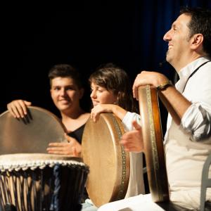 Gemeinsam mit den Trommel-Youngsters Malika und Yaschar Coşkun präsentiert der renommierte Percussionist Murat Coşkun mit „TAKIDINA JON“ kleinen und großen Zuhörer:innen die faszinierende Trommelwelt: Mal virtuos mit Solo-Einlagen, dann werdet ihr mit lauten oder leisen-feinen Tönen in eine ferne Rhythmuswelt entführt. Mal singen sie Lieder – lustige oder traurige -, dann einen groovigen Rap in drei Sprachen. Mal ertönen ungewohnte Klänge, mal trommeln die drei wild in der Küche! Es gibt kurze Geschichten zum Lachen und ihr alle seid eingeladen bei Takidina Jon mitzumachen!